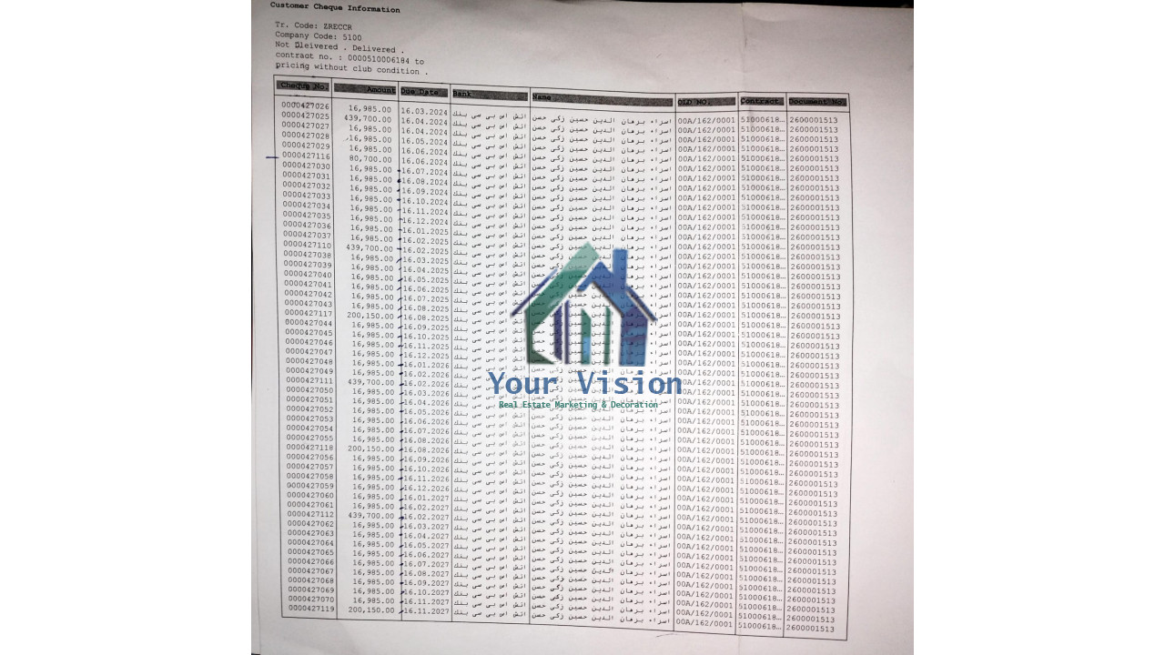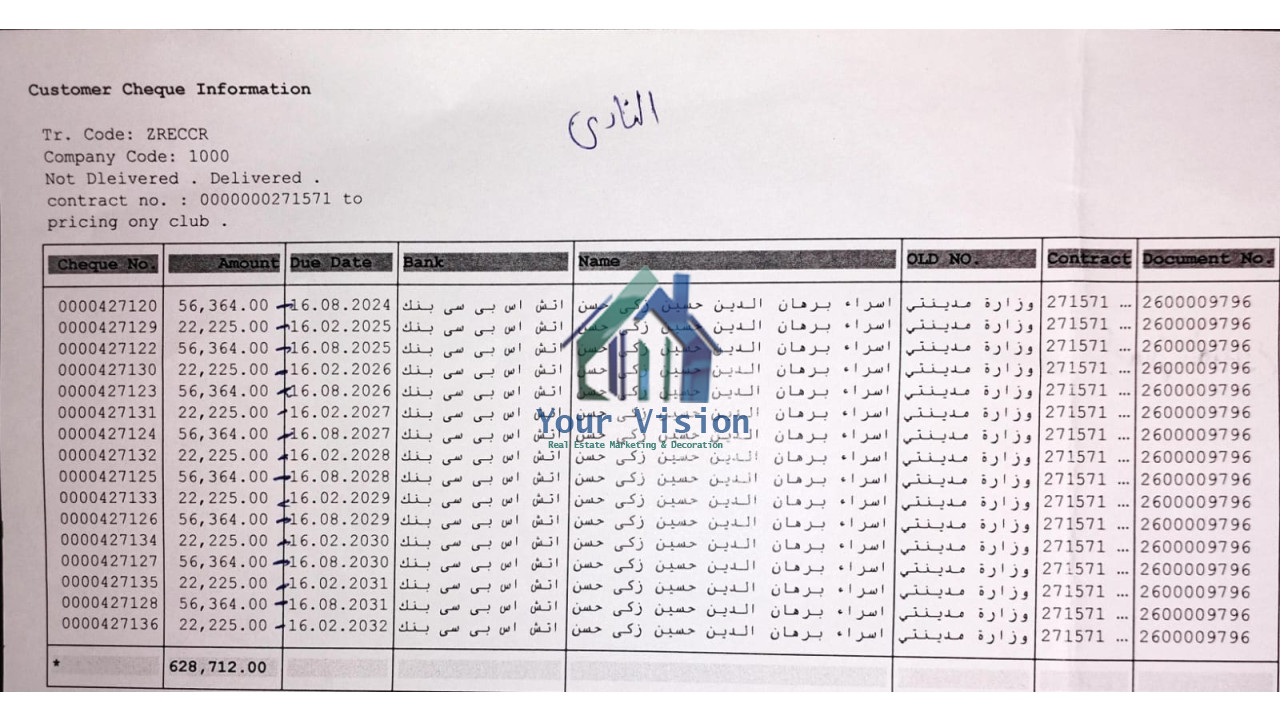 شقة للـبيع - تقسيط في مدينتي مساحة 107 - مطلوب 2,856,000 تشطيب:...