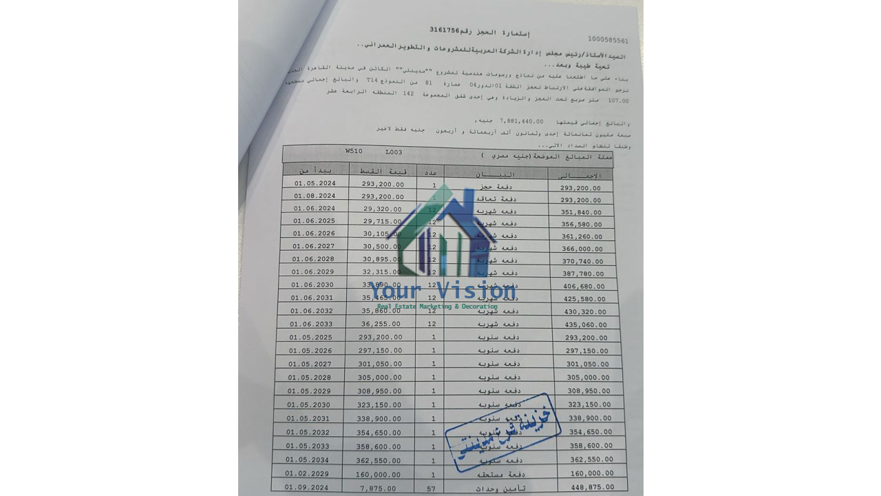 مساحة 107 - مطلوب 1,800,325 تشطيب: شركة المرحلة: B14 النموذج: T14 الفيو: بارك الدور: الرابع نوم: 3 حمام: 2 سعر المتر: 73658 مساحة الحديقة: 0 اجمالي العقد: 7,881,400 المدفوع: 1,350,325 المتبقي: 6,531,075 الاوفر: 450,000 قسط سنوي: 297150 قسط شهري: 29715
